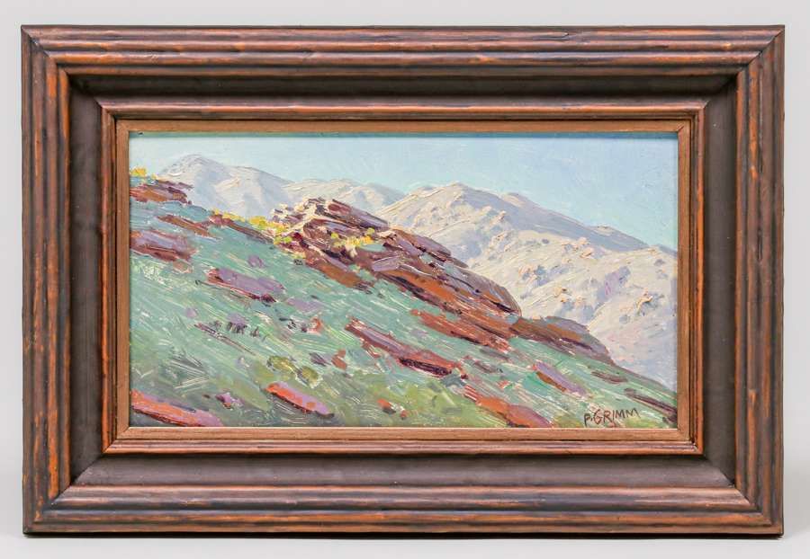 Paul Grimm (1891-1974) Painting San Jacinto Mountain near Palm Springs. Signed. Excellent condition. 6.5”h x 11.75”w. Frame 11”h x 16.25”w SOLD