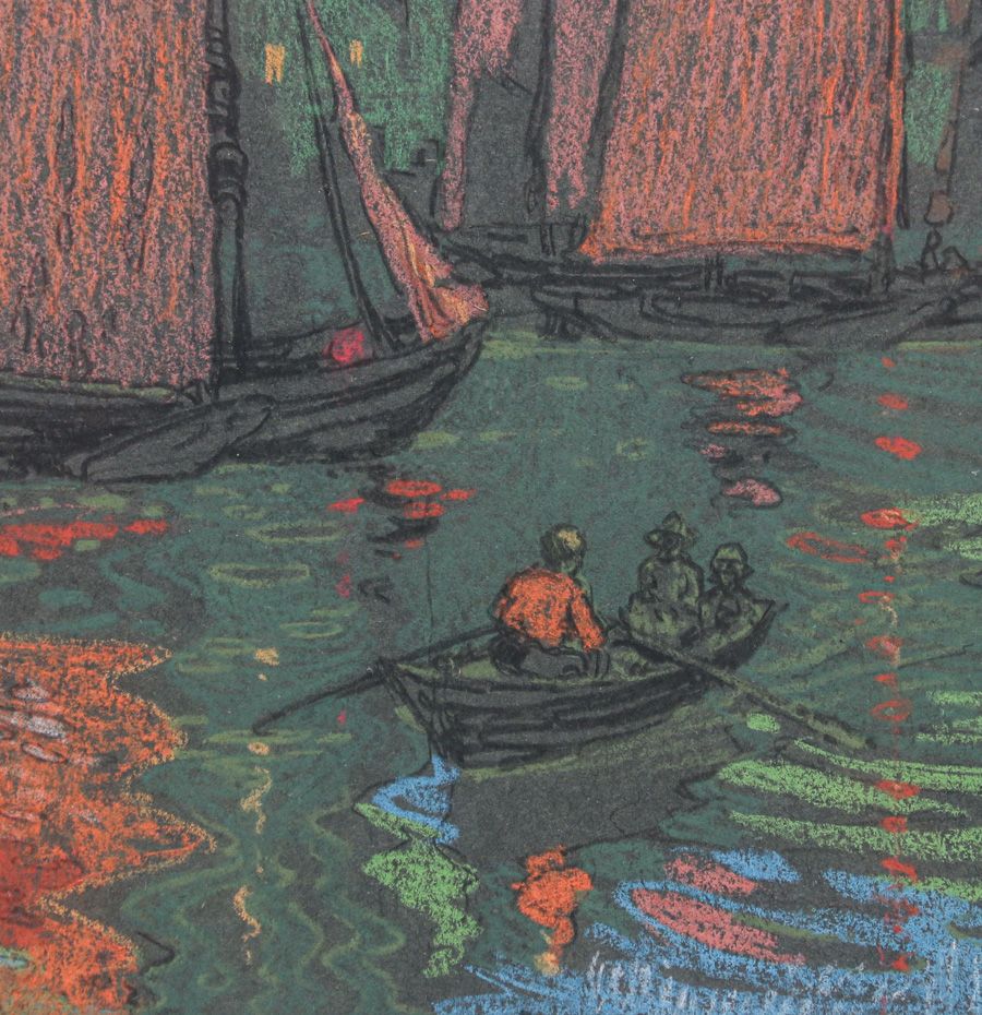 - Pedro de Lemos (1882-1954) Pastel "The Boats of Vollendam" c1910