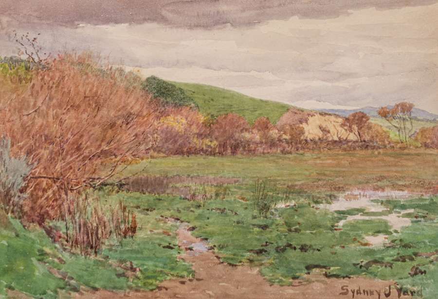 - Sydney J. Yard Watercolor "Marshland near Monterey" c1900