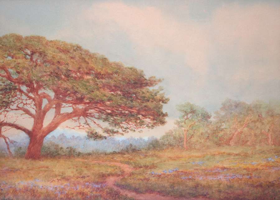 - Xavier Martinez Watercolor Oak Tree & Lupine c1905