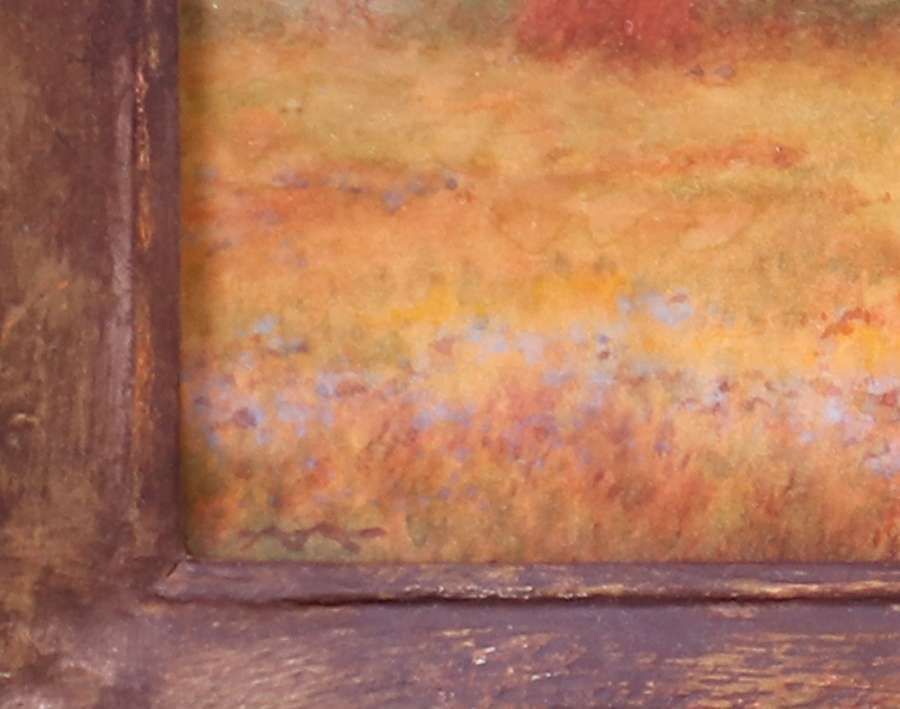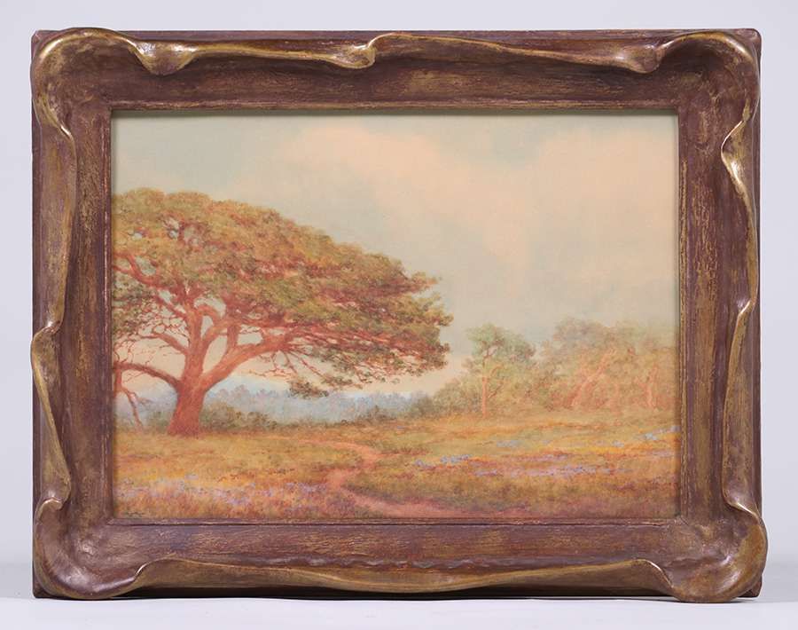 Xavier Martinez (1869-1943) watercolor Northern California oak tree and lupine meadow c1905. Signed lower left with cypher. Incredible original frame. Excellent condition. 10.5"h x 14.75"w. Original frame 14.5"h x 18.75"w SOLD